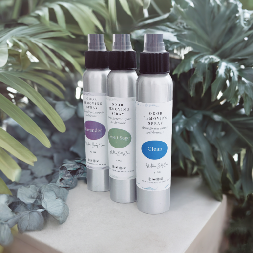 Odor Removing Spray. This long-lasting spray just doesn't mask the smell, it eliminates it. Our new spray works as an odor eliminator for dog and cat smells, as well as smells from smoke, trash cans, mildew, and bathrooms. It is a deodorizer and fabric refresher for shoes, closets, clothes,